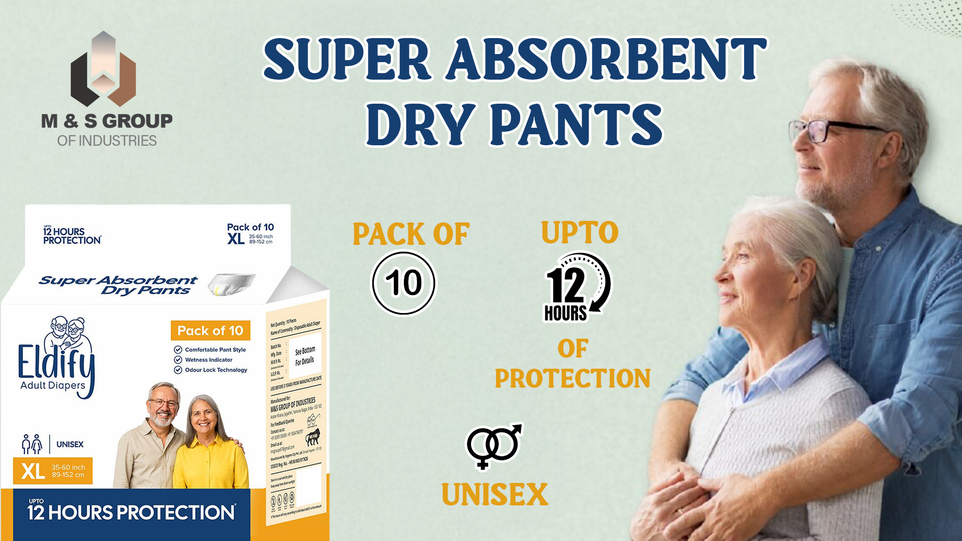Crafted with Super Absorbent Dry Pants design, these diapers lock in moisture instantly, prevent leaks, and keep the skin feeling fresh for up to 12 hours. The soft, stretchable waistband and pant-style fit ensure ease of wear, while the wetness indicator helps caregivers know exactly when it’s time for a change. Eldify’s odour-lock technology maintains lasting freshness and dignity throughout the day.